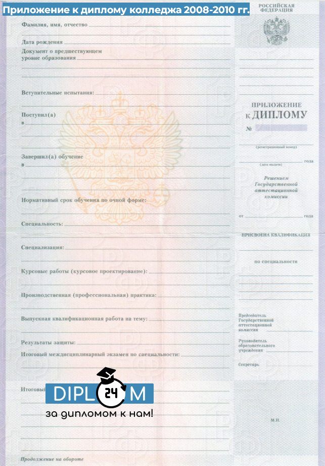 Диплом колледжа 2008-2010 гг.