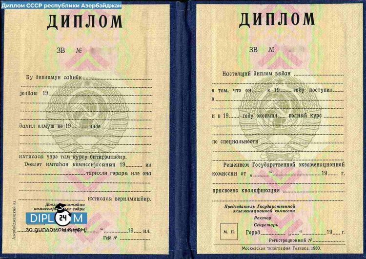 - Диплом СССР о высшем образовании Республики Азербайджан