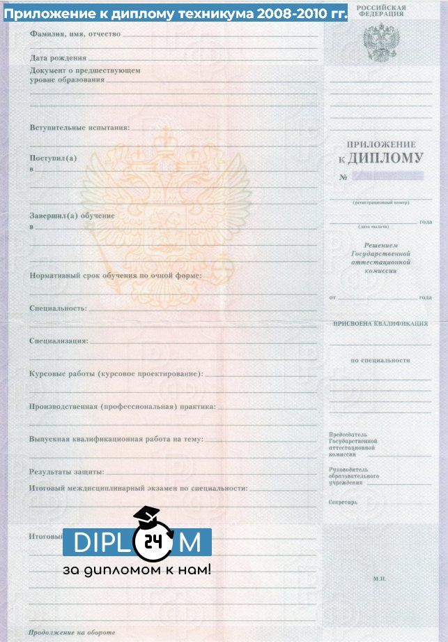 Диплом техникума 2008-2010 гг.