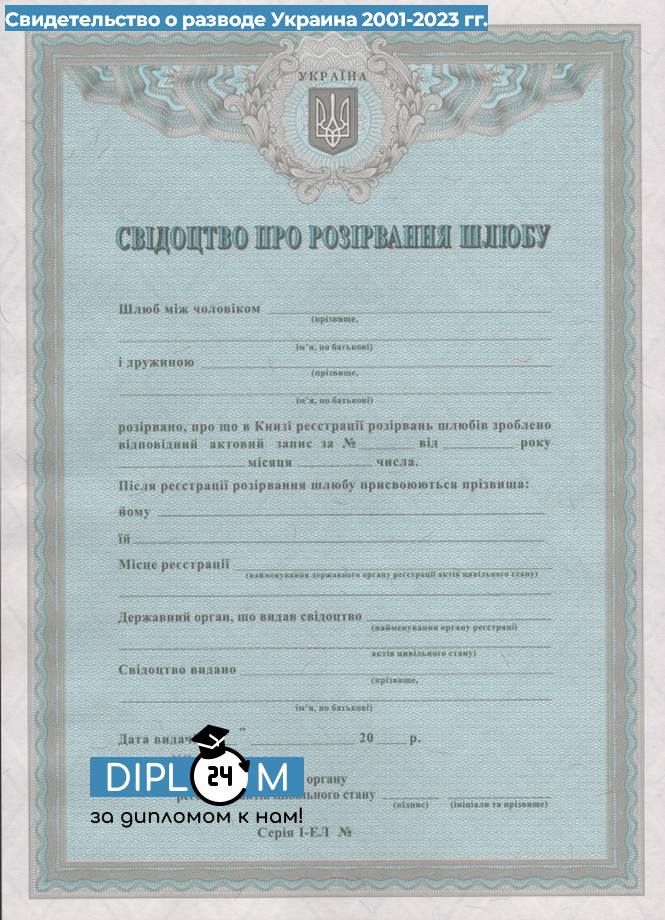 Свидетельство о разводе Украина 2001-2023 гг.